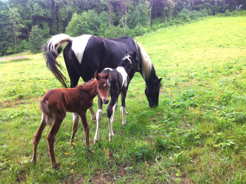 Přesto jsem byla opatrná, když měla Joli před druhým porodem. Tentokrát rodila sama, ve výběhu ze kterého měla výhled na ostatní koně, aby s necítila moc sama. Své druhé hříbě- hřebečka Little Prince už neodmítla, ale chovala se k němu „vlažně“. Potřebovala naši malou pomoc, aby si na něj zvykla. Při kojení jsme ji drželi, hladili, uklidňovali. Na několik prvních dní jsme ji dali s ním do boxu, aby od něj nemohla utéct. Za pár dní z ni byla v celku normální pečující mamka. A postupně se z ni stala dobrá chovná klisna.