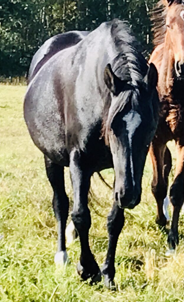 Petit Joli (v překladu z francouzštiny „Malá Pěkná“) Tahle drobná KMSH vranka se ke mně dostala z jedné komerční stáje, zaměřené na chov anglických plnokrevníků, kde neměla v podstatě žádné využití. Je to nenápadná kobylka, ale má skvělý původ a povahu. V jejím rodokmenu je uvedený hřebec „Old Tobe“, zakladatel plemene.