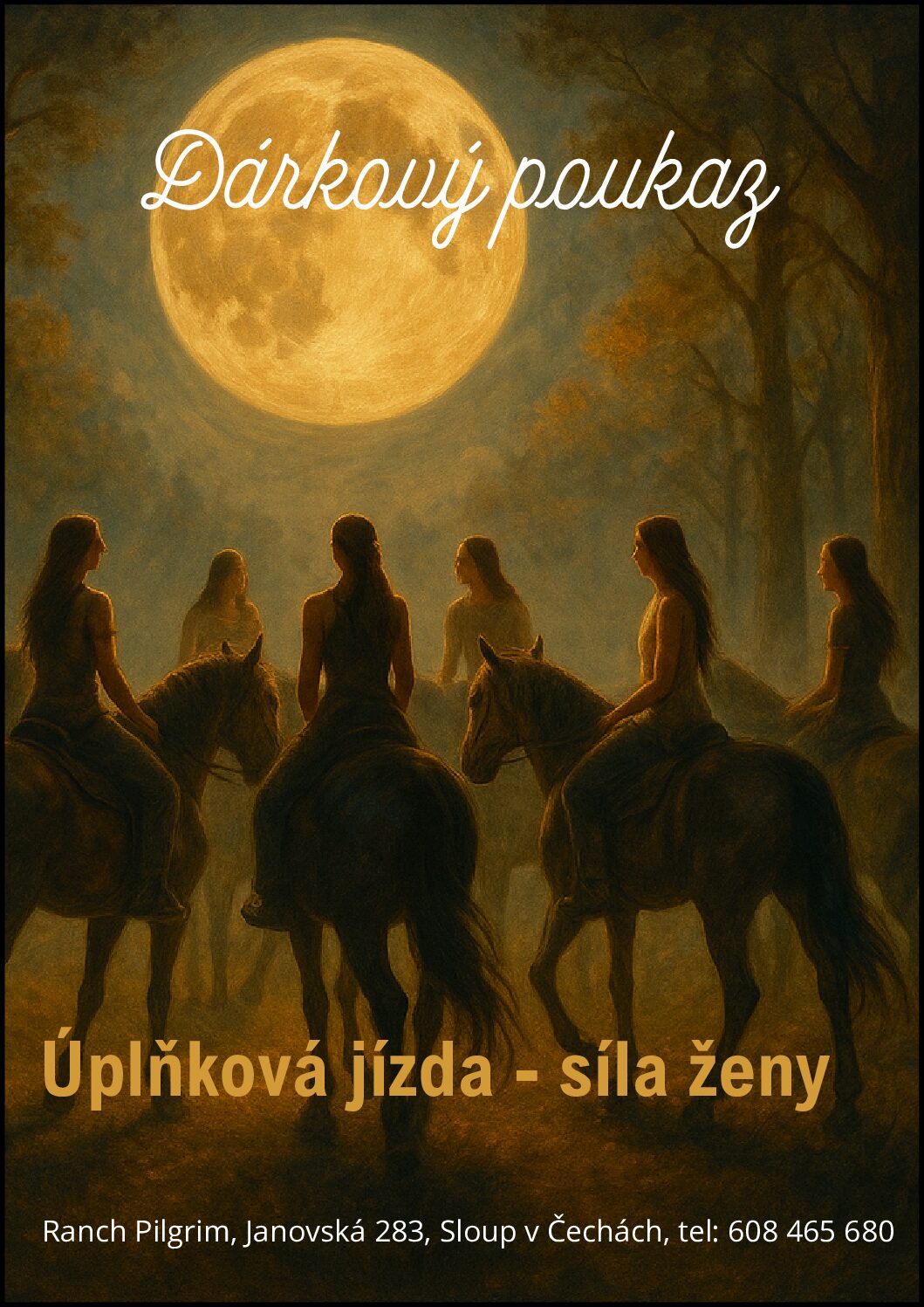 Každá přírodní žena ví, anebo aspoň tuší, jak velkou magickou sílu má kůň a že to není jen obyčejné zvíře. Každá žena cítí sílu měsíce v úplňku. Tak to pojďme spojit v jeden nezapomenutelný zážitek noční jízdy na koních. Ta jízda nás omladí a znovu nám rozproudí krev v žilách.