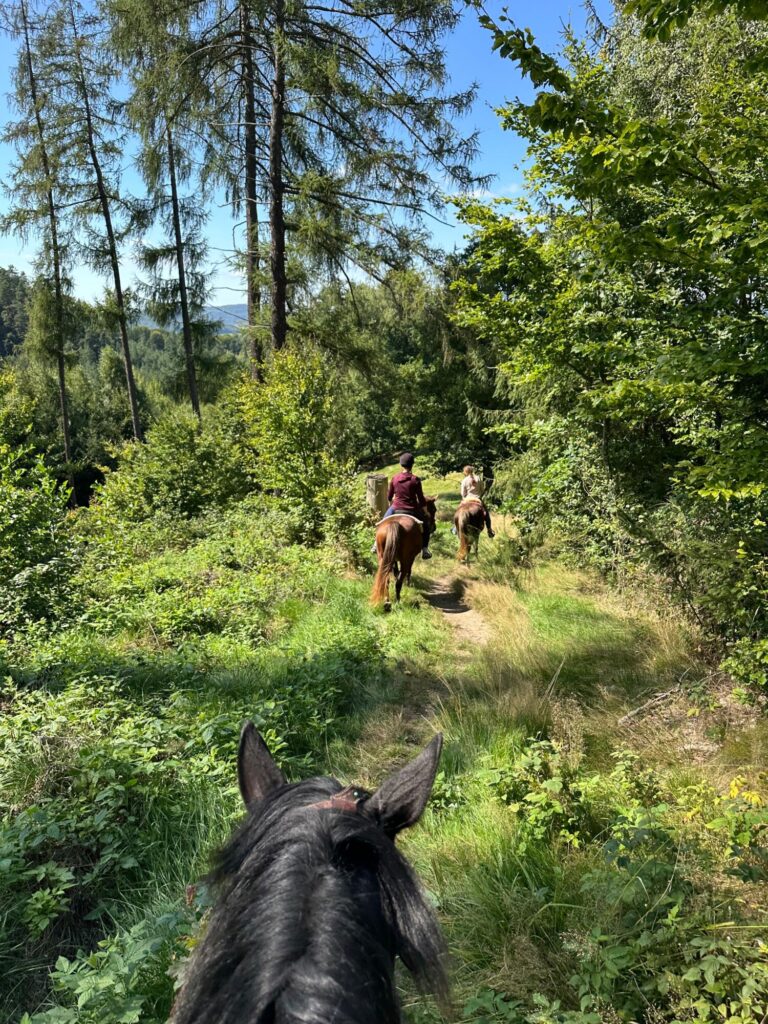 Cestou necestou na koních…Krajina kolem obcí Maxov a Radvanec nabízí spoustu křivolakých steziček mezi skalami a kopci s krásnými výhledy.